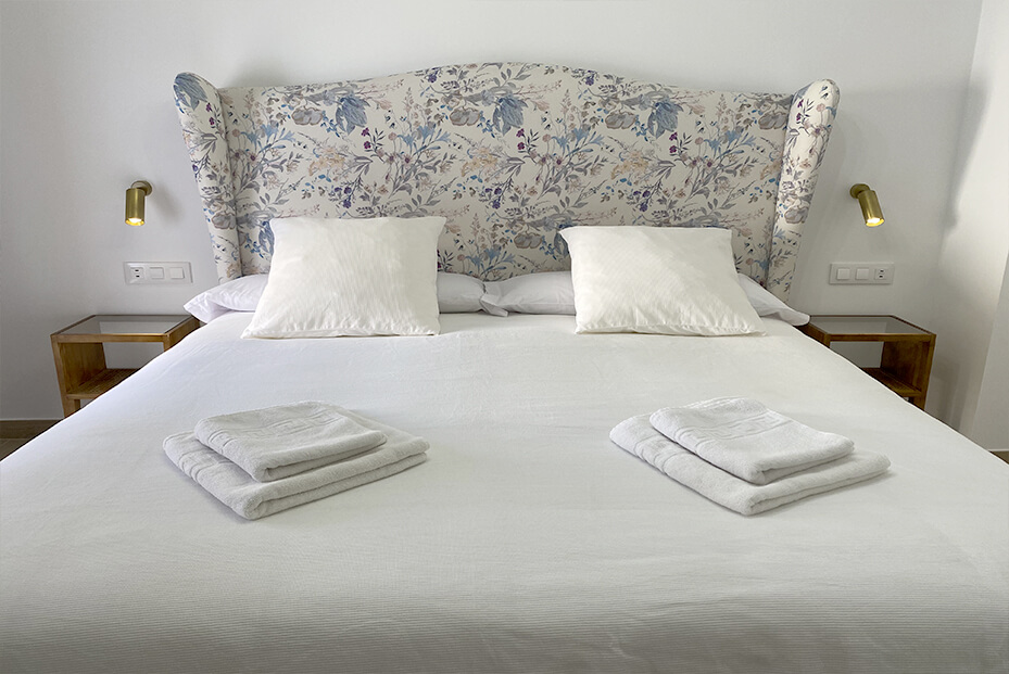 Habitación accesible en planta baja, predomina el frontal de la cama de ladrillo visto. Dispone de ventana con vistas a la calle.