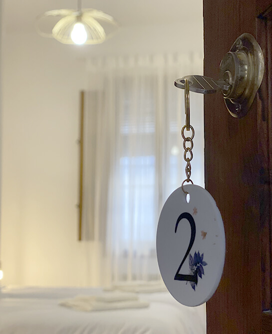 Habitación situada en planta primera, es la que transmite mas paz y relajación. Cuenta con una ventana balconera a la calle.